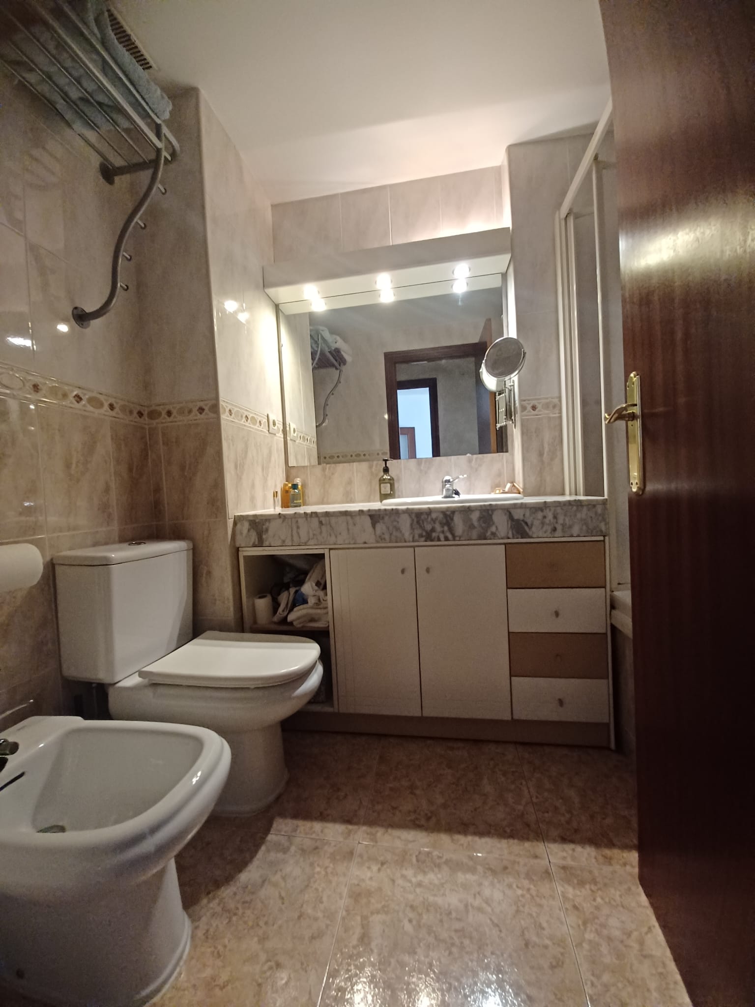 Este ático cuenta con tres habitaciones, siendo una de ellas doble, lo que proporciona espacio suficiente para toda la familia. Además, dispone de un baño completo con bañera y un aseo adicional con plato de ducha, garantizando comodidad y privacidad.